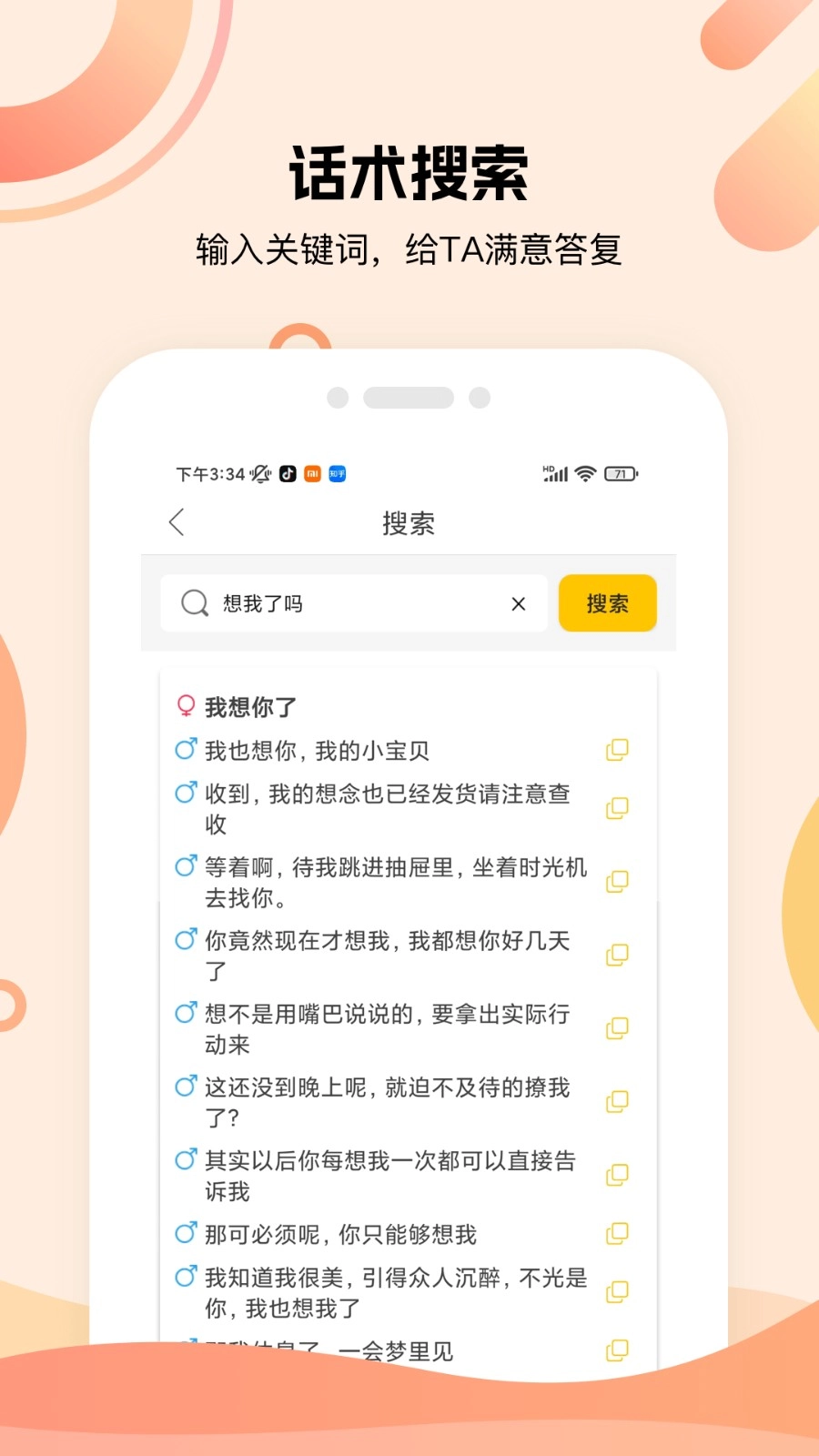 1.带来丰富的恋爱话术素材,可以解决你的各种感情问题,让你轻松解决。