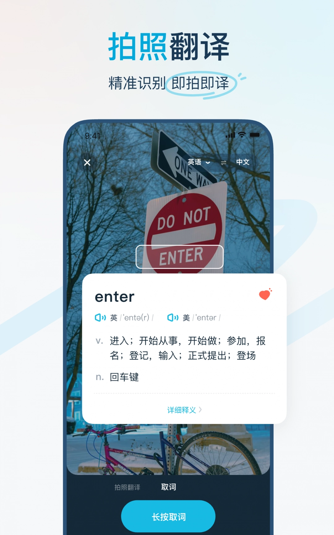 无需手动输入即可快速翻译多种语言,具备OCR摄像头取词与拍照翻译功能。