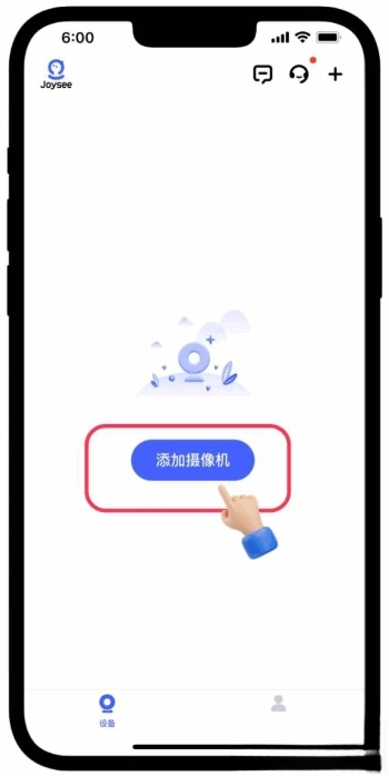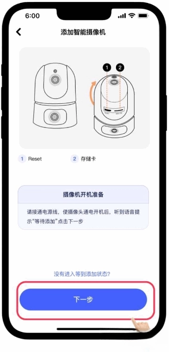 摄像头通电,在听到【等待添加】时点击按钮