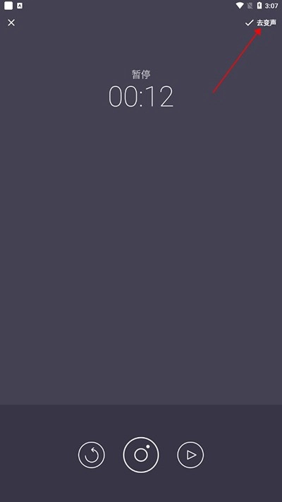 录音完成后,我们只需点击右上角的“去变声”功能(如下所示),就能挑选自己想要的变声特效了。