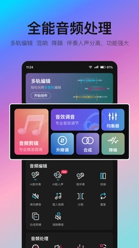 音编美声最新版是一款专为热爱剪辑与音乐的用户打造的软件,多种专业功能,能助力你制作各类音频,还可实现人声与伴奏的分离,各类音频格式的相互转换在此也能轻松完成。此外,你还能进行调音操作,软件内配备了丰富的新手教程,帮助你快速上手,堪称一款十分优秀的软件。