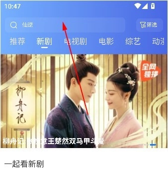 1、第一步打开搜索栏,输入想看的内容关键词。