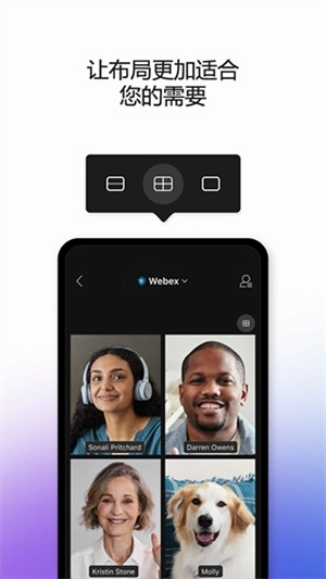 Webex会议的安卓端支持高清视频与音频功能,能够保障会议期间语音和画面的清晰流畅。