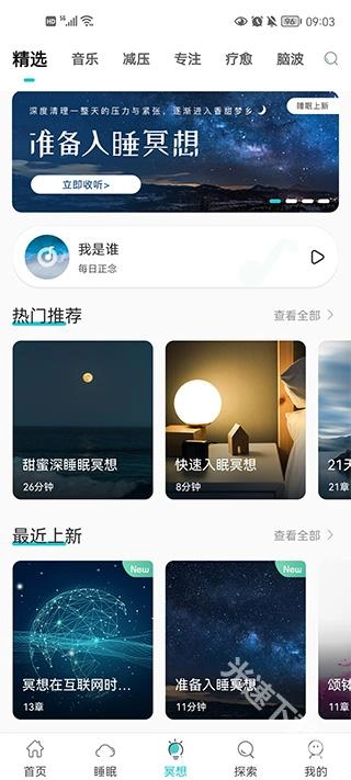 大家在睡眠时间里,总会去冥想一些事情,这款软件提供了多种不同的冥想内容,可以帮助用户更专注地进行冥想。