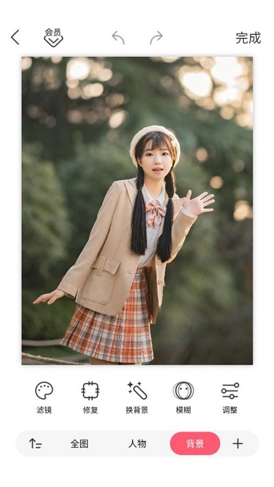 点击【背景】按钮,就能开展更换背景、背景模糊处理以及修复等相关操作。