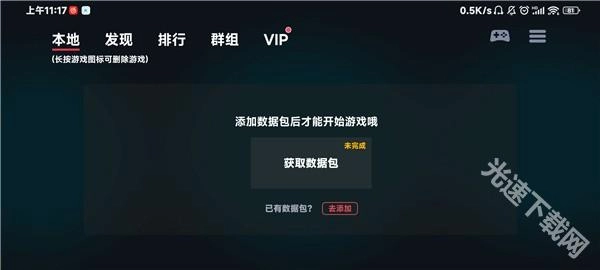 打开软件后,会看到弹窗提示需添加数据包才能开始游戏。