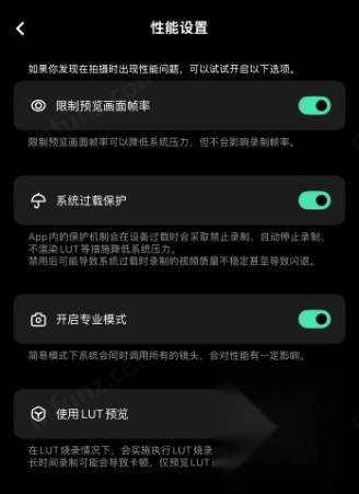 调节LUT的菜单会把录制按钮和设置选项都挡住,这样的设计感觉有些多余。