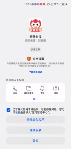 第三步,勾选“已了解此应用未经检测……”这一选项,接着点击“继续安装”按钮。(若弹出安全提醒,无需担心)