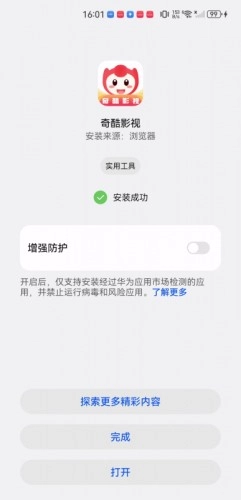 最终,屏幕上出现绿色对号,就表示“安装完成”了,点击“打开”按钮,就能开始体验。(要是遇到安装失败的情况,可以点击)