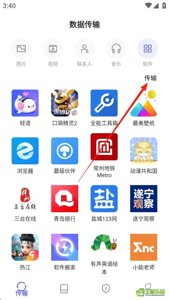 用户打开软件搬家App后,能够传输图片、视频、联系人、音乐和软件等内容。