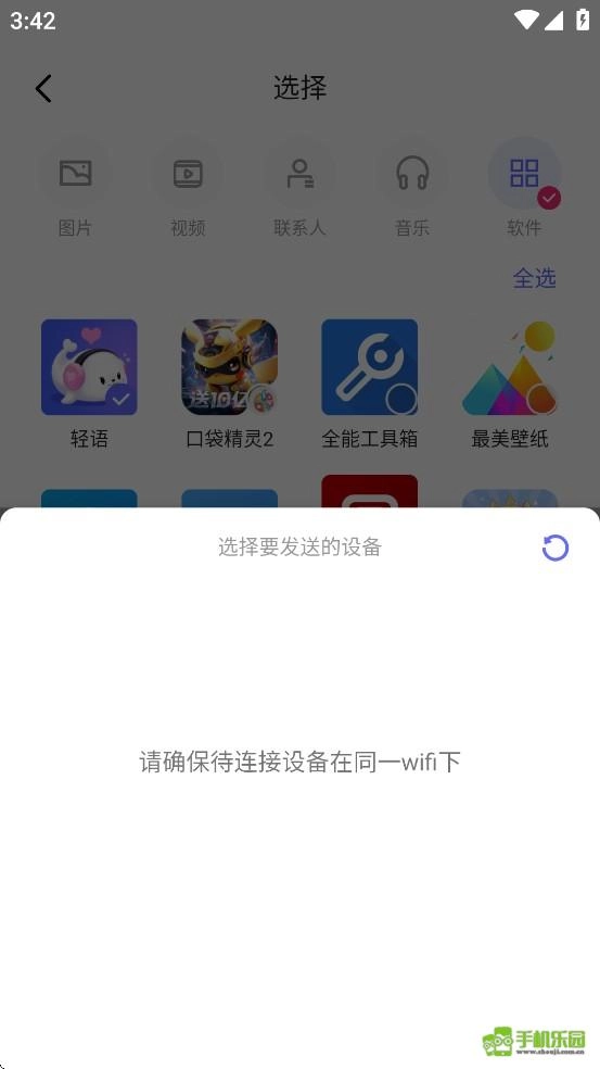 接收设备需和发送设备处于同一个WiFi环境中,完成连接后就能开展传输操作了。