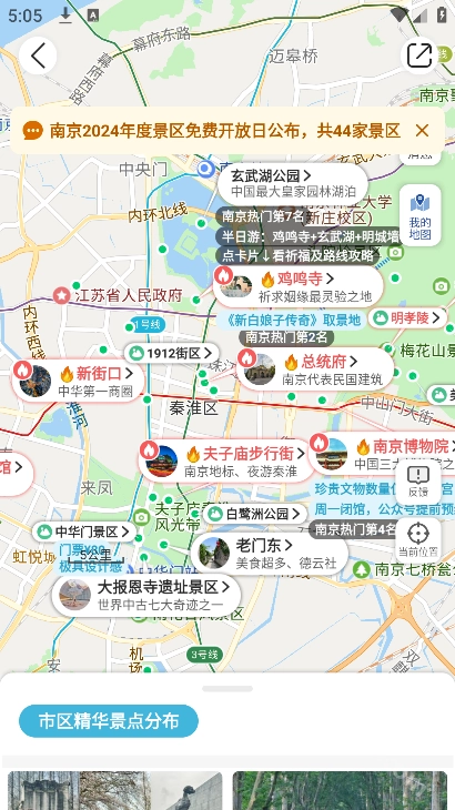 点击旅游景点后,软件会通过地图呈现相关信息,同时给出交通方式建议、特色美景推荐,还能帮忙规划好行程路线。
