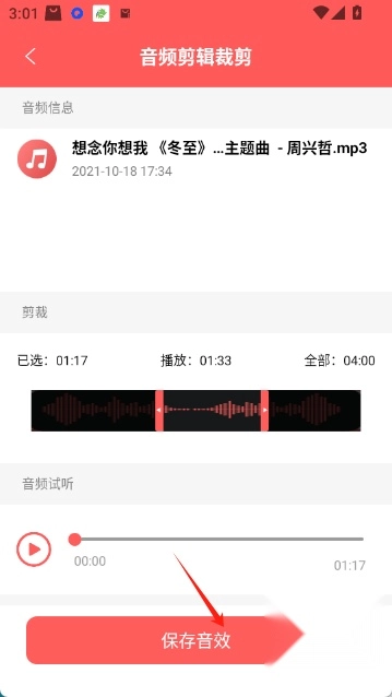 接着按照自身的需求对音效进行裁剪,完成后点击保存音效就可以了。