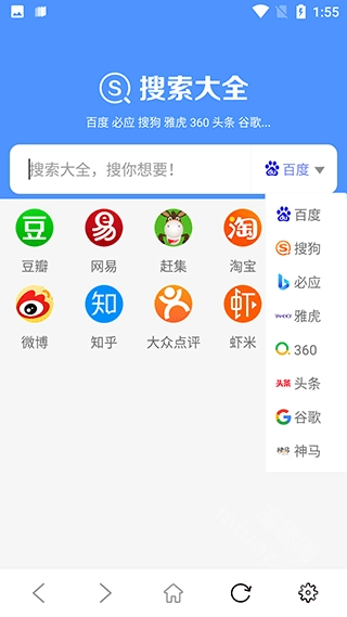 首页有百度、搜狗、必应等搜索引擎,可随意切换;