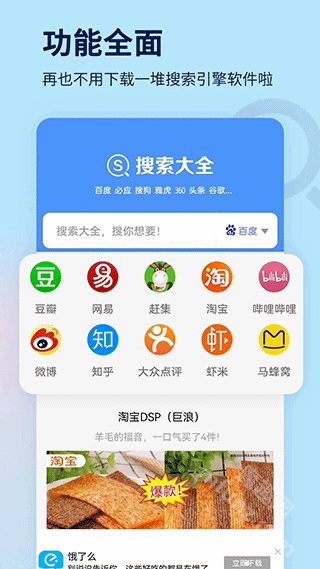 聚合多个搜索引擎:搜索大全整合了多家搜索引擎,用户不用频繁切换不同平台,就能依据自身需求挑选合适的搜索引擎开展搜索。