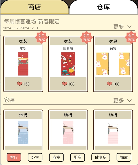 爱心可以用来购买家具和装饰道具,装饰小屋。