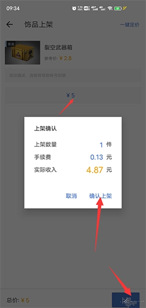 选择需上架的物品并输入价格,点击“上架”并确认。