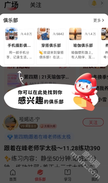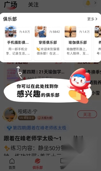 在俱乐部里,你能加入自己感兴趣的圈子,也可以关注感兴趣的老师。
