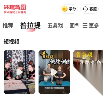 首页设有普拉提、固气活血、太极、手机摄影等栏目,大家可依据个人喜好筛选内容。