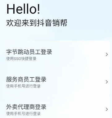 然后依据自身的身份,挑选对应的登录途径,具体包含字节跳动员工登录、服务商员工登录以及外卖代理商登录这几种方式。