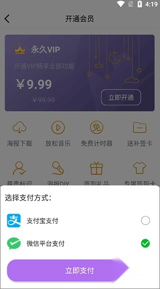 在选定支付方式后,点击“立即支付”按钮,就能顺利获得补签卡。