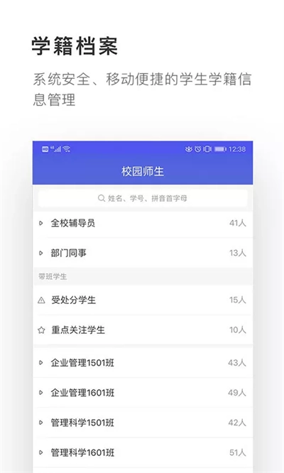 提供处分登记功能,用户可在应用内快速完成各类学生处分的登记操作。
