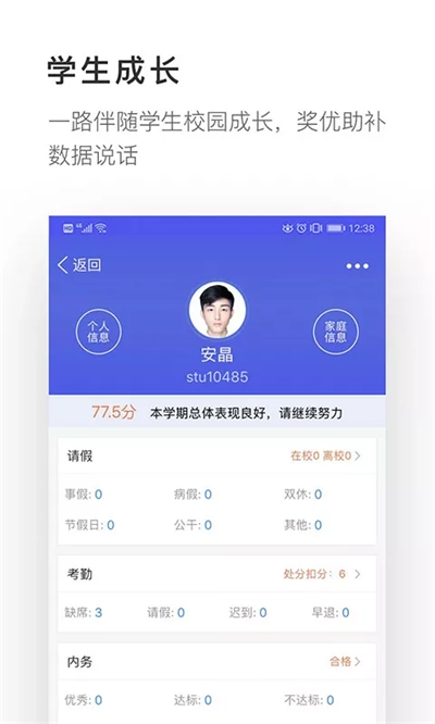 随时都能点击任意学生,进入查看其详细情况、家庭情况等信息。