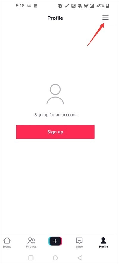 安装好抖音海外版TikTok后,点击右下角的“profile”按钮。