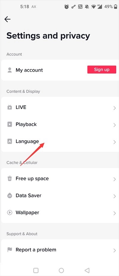 接下来选择“language”功能栏。