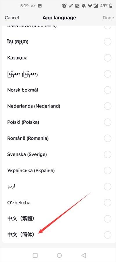 最后就能在里面更换应用的语言啦!