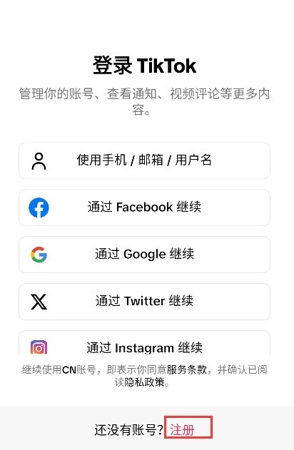 登录TIKTOK时,可直接使用以下账号进行登录操作;若您尚未拥有相关账号,可点击下方的注册按钮完成账号注册。