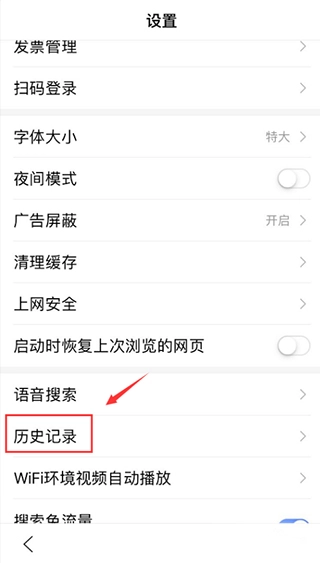 首先打开度娘浏览器,进入到首页之后点开 我的 页面,然后翻到页面最下方打开 设置,找到历史记录;