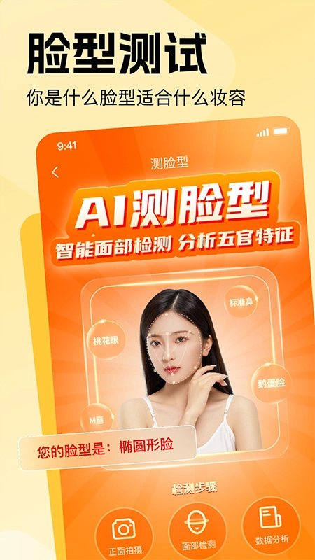 智能面部检测技术,精准剖析五官特征。上传一张正面照片,系统便会运用三庭五眼的智能算法,深入解析您的脸部特质,进而为您量身分析适配的妆容打造方法。