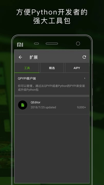 智能编辑器QEditor为移动端Python项目开发提供了相应的环境支持。