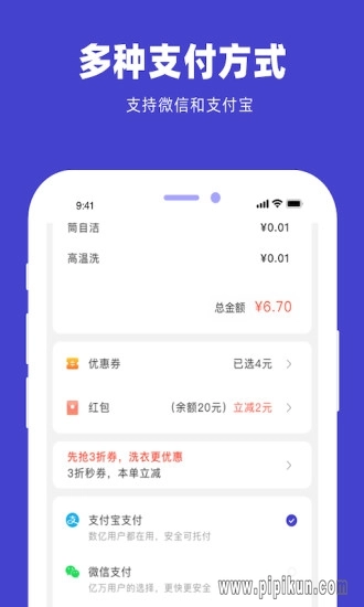 U净是美的集团旗下的校园生活服务交互平台,专注于为广大大学生群体提供优质便捷的校园服务。目前,平台已覆盖全国1500多所高校,并在大学校园、社区、酒店公寓构建起线上预约与线下服务相结合的体验式综合服务体系。该平台支持支付宝、微信、银联等多种支付方式,让用户能够一键预约,畅享便利服务与智慧校园新生活。更多功能,欢迎体验U净。