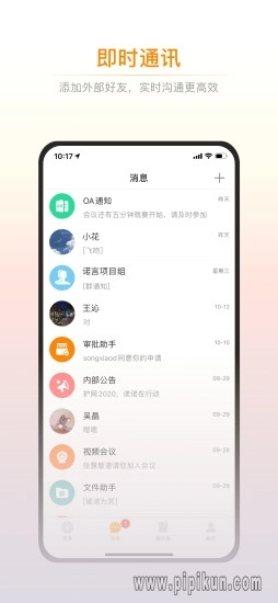 企业员工入职后,就能不受时间地点限制地进行移动聊天、即时通讯和数据传输,达成移动化办公的目标。