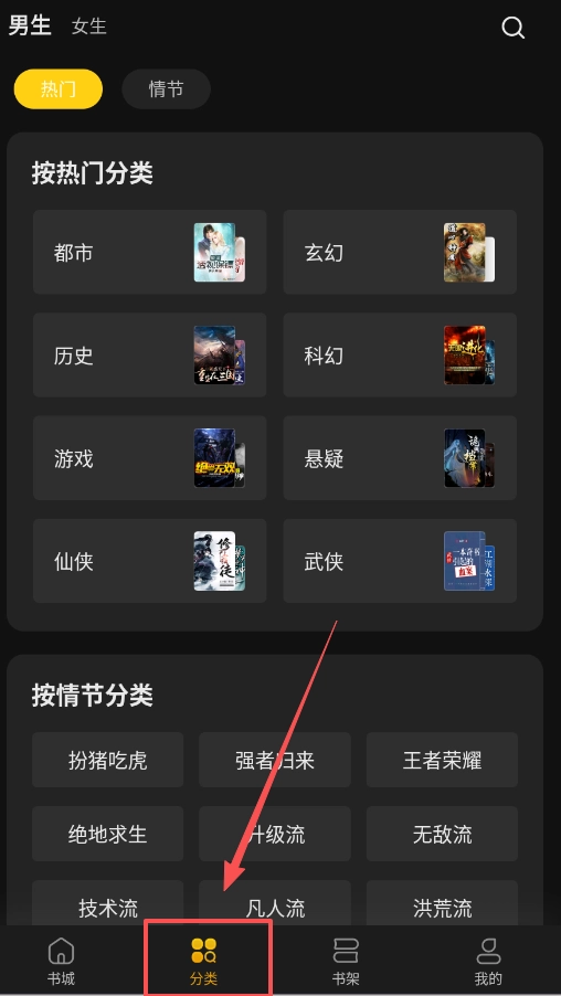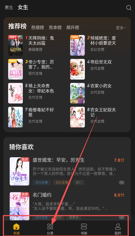 软件提供了两种高效的找书方式:其一,借助“分类”页面;其二,浏览“书城”页的各类榜单(像热搜榜、完本榜等),以此快速了解流行趋势。