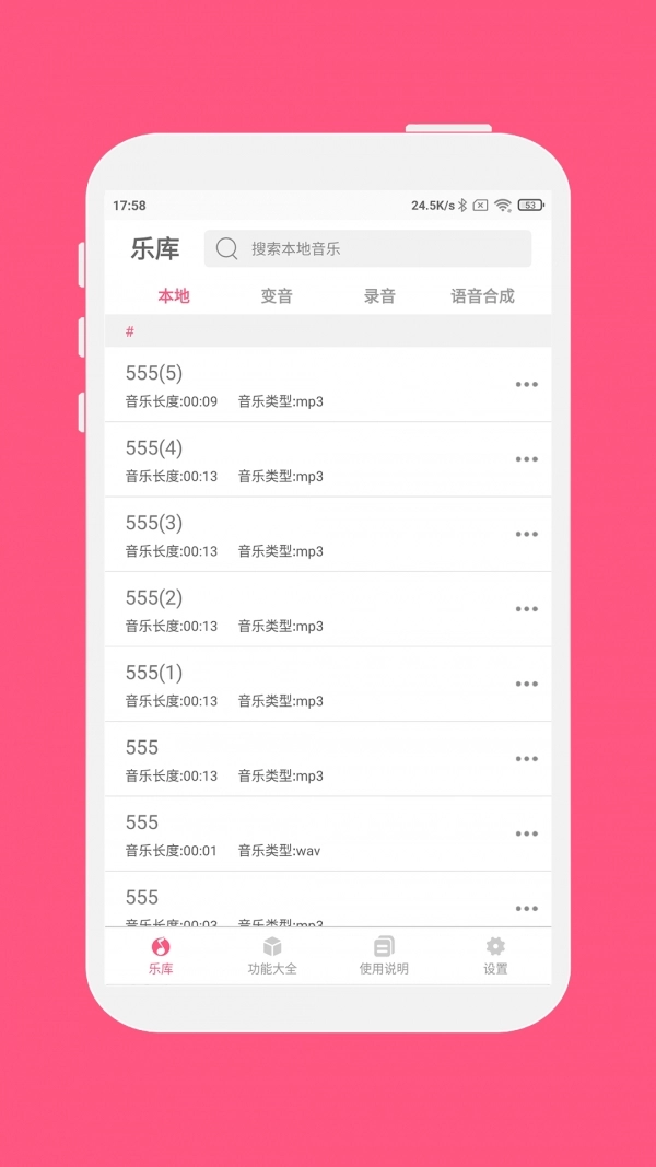 变声、变速、变调功能,能够调整本地音乐的播放速度、音调,还能设置回声和颤音等效果,让音乐体验更具趣味性。