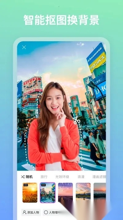 智能功能十分强大:借助智能人脸识别技术与极速美颜算法,可细腻展现皮肤与头发的细节;AI智能抠图能够自动识别并去除多余背景、裁剪图像,同时提供丰富多样的背景主题;还支持多人抠图,让你轻松和远方朋友实现同框效果。