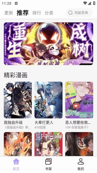软件首页会推荐精彩漫画,要是遇到喜欢的书名,也能直接点击放大镜图标搜索该书名。