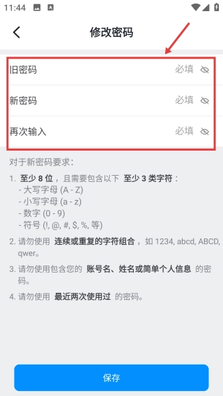 完成信息填写后,点击页面上的“保存”按钮,就能完成密码修改的操作了。