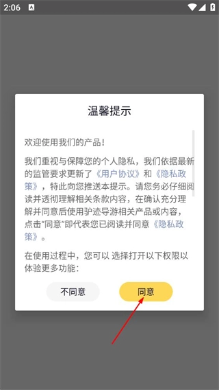 在温馨提示弹窗里,点击同意按钮,就能进入登录页面。