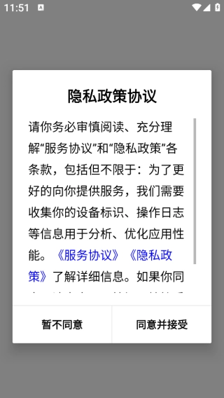 完成以后,用户需要先同意并接受隐私权限。