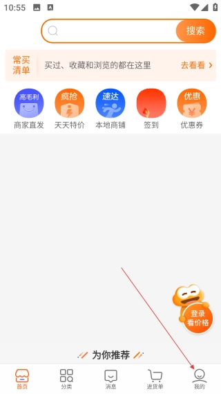 在阿里零售通的首页,点击页面底部的【我的】选项,就能进入账号登录的界面。