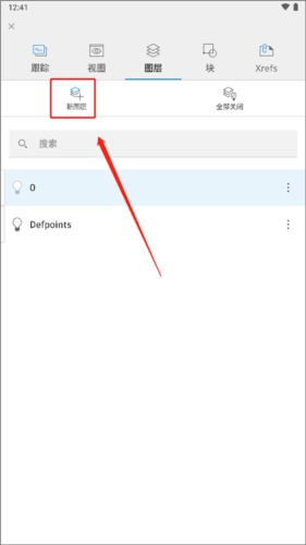 4、在图层控制中心界面中,选择“新增图层”按钮。