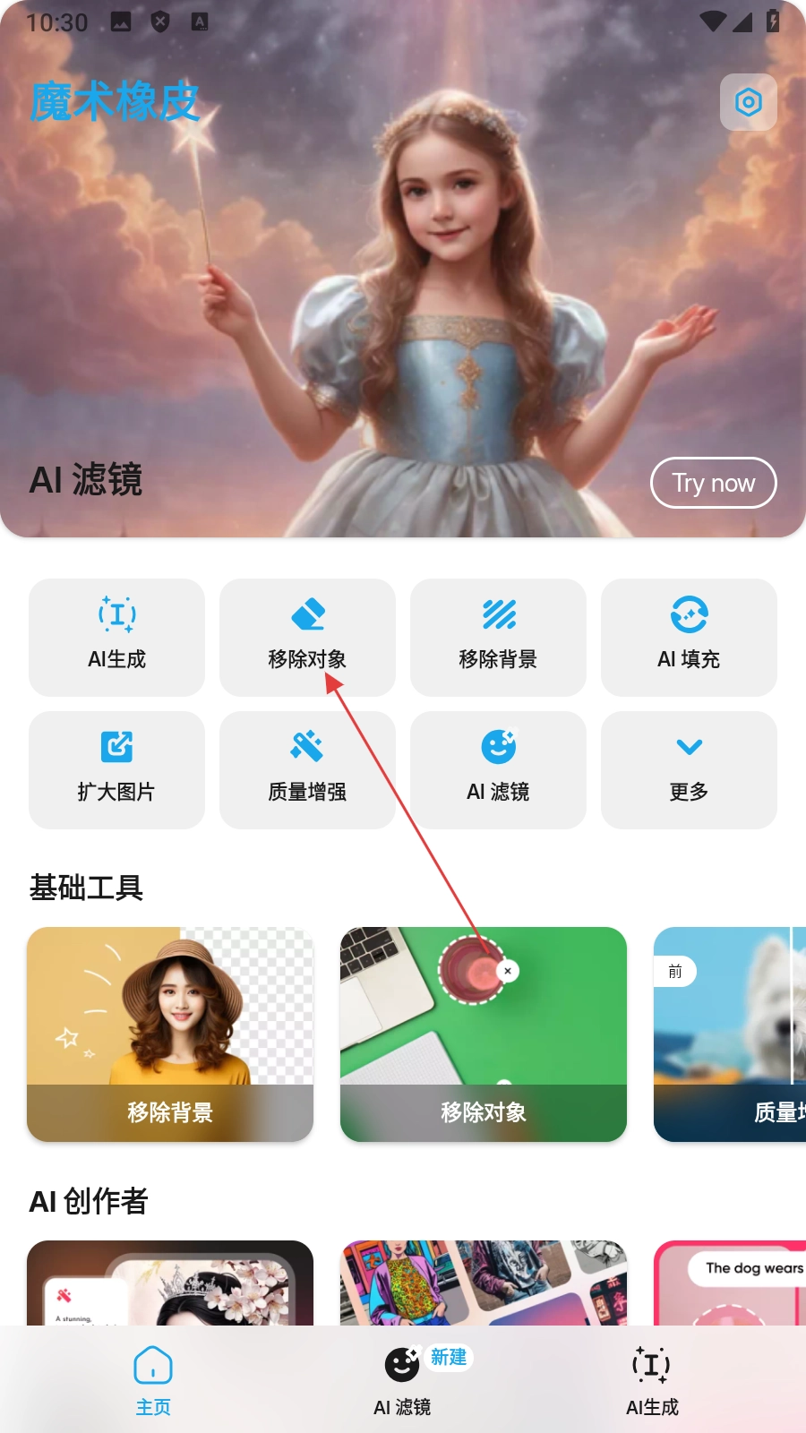 1、点击【移除对象】,进入图片选择页面。