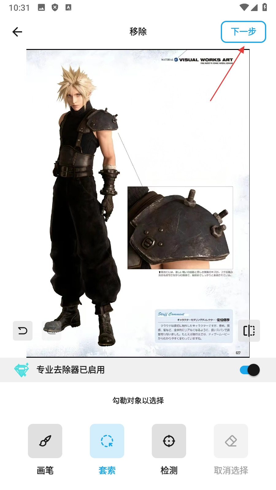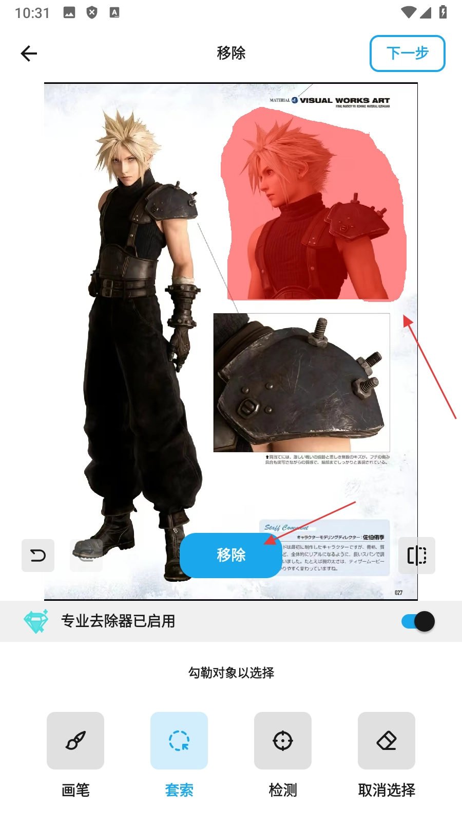 3、先运用【套索工具选定需移除的对象】,随后点击【移除】按钮。