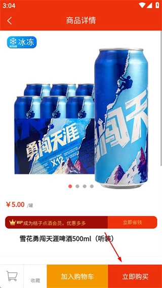 2、在啤酒商品列表页面,挑选自己感兴趣的商品,点击进入该商品的详情页面。