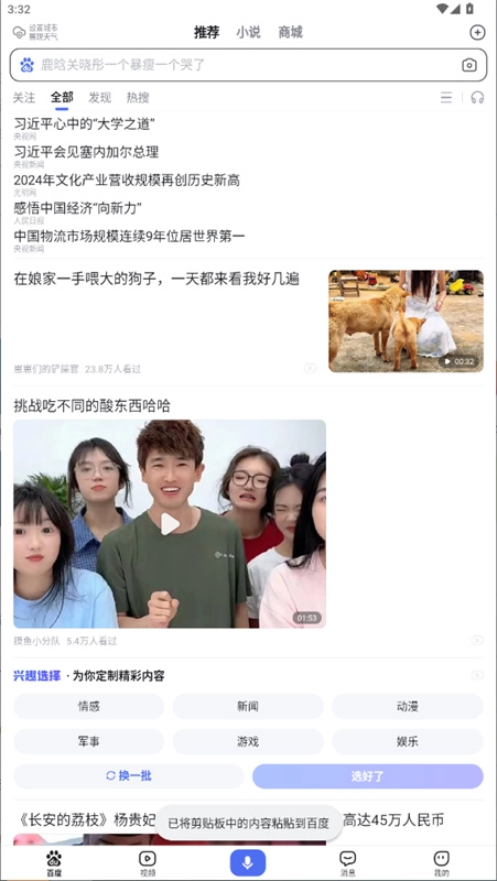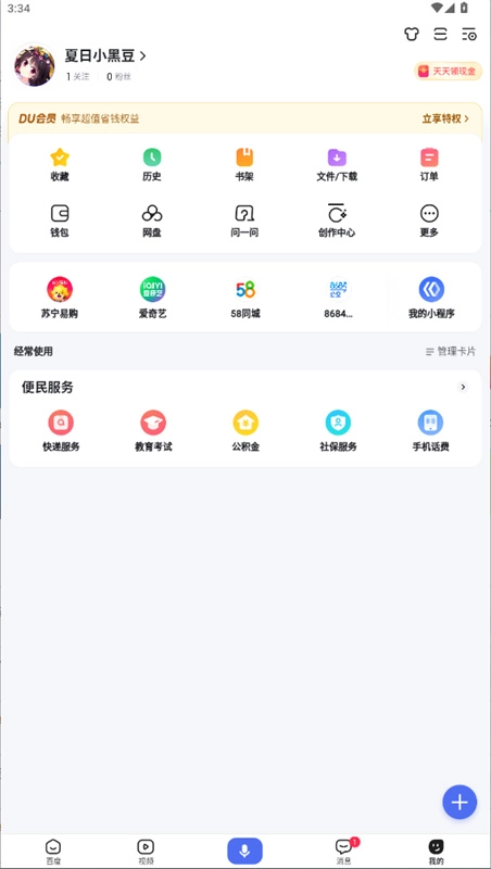 首页底部设有快速入口直达视频频道,这里汇聚了海量明星娱乐、搞笑段子与经典剧集视频;你还可以拍摄小视频记录身边的新鲜事,操作简单便捷,既能观看精彩内容又能轻松创作。