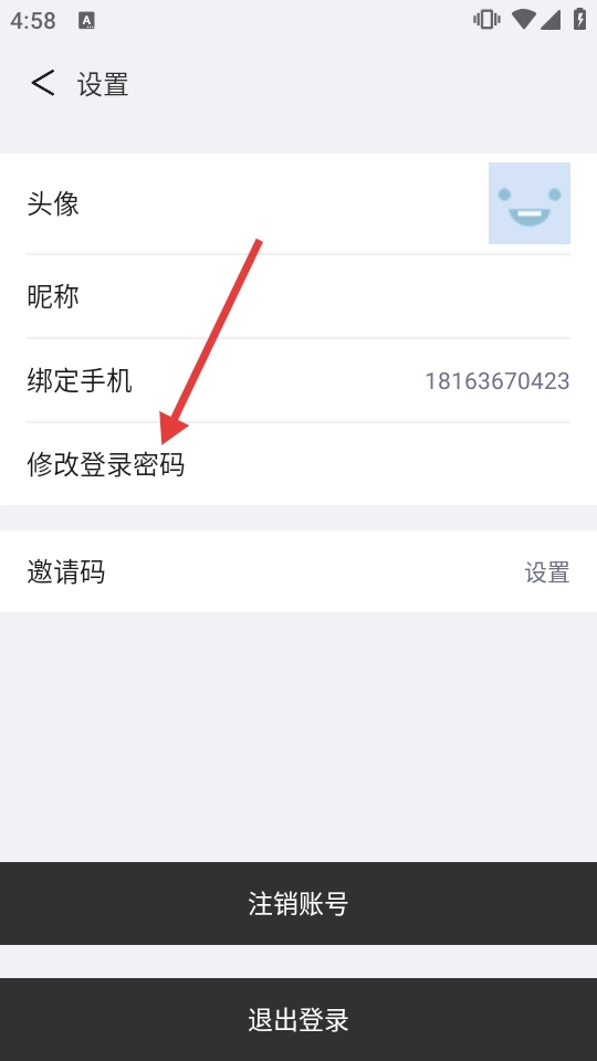 3、打开【设置】,选择【修改登录密码】选项,即可更改账号密码。